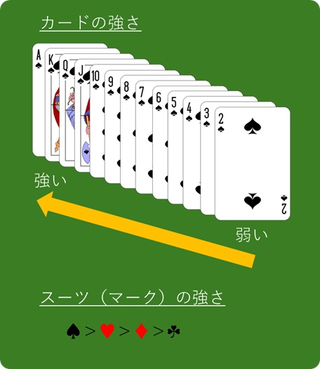 カードとスーツ(マーク)には強さが決められています。